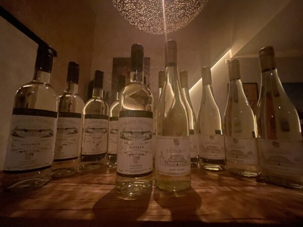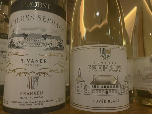 - Klassisch: Die Bordeauxflasche mit dem Rivaner-Etikett – so, wie es schon vor fast 20 Jahren die ersten PROBST-Weinflaschen für Schloss Seehaus schmückte. Ein Stück Geschichte – Variation 1 wieder neu aufgelegt.
